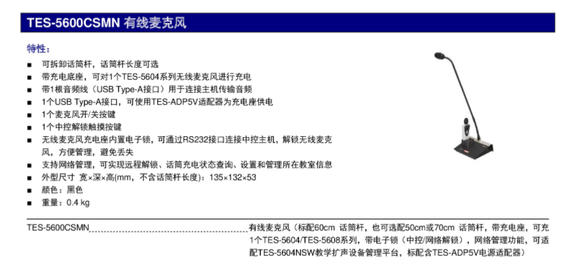 有线麦克风台电TES-5600CSMN