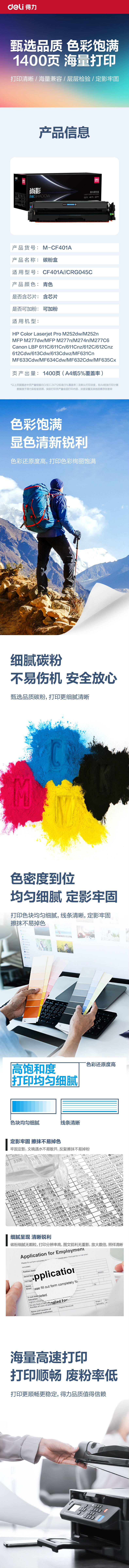 得力(deli)尚影硒鼓 M-CF401A打印量1400页含芯片适用HPColor Laserjet Pro M252dw M252n M277dw 硒鼓青色