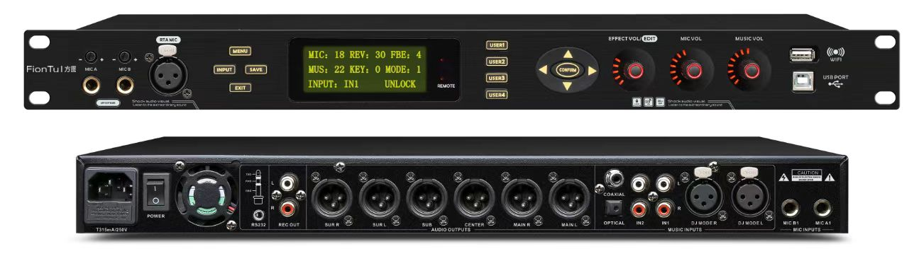 1.采用高性能 DSP 和 AD / DA ,32位,96K采样纯数字的专业 KTV 前置效果器。