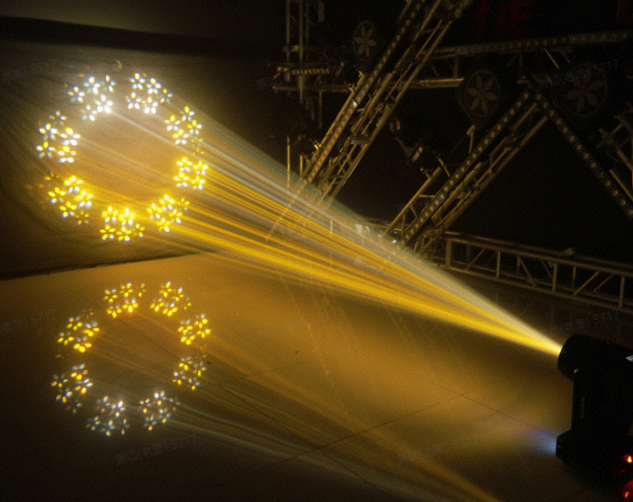 颜色: 带有14种颜色+白光+色温片,可半色彩虹效果,;也可双向旋转彩虹效果;七彩:独立七彩光束效果,独立七彩棱镜效果,清晰鲜艳;