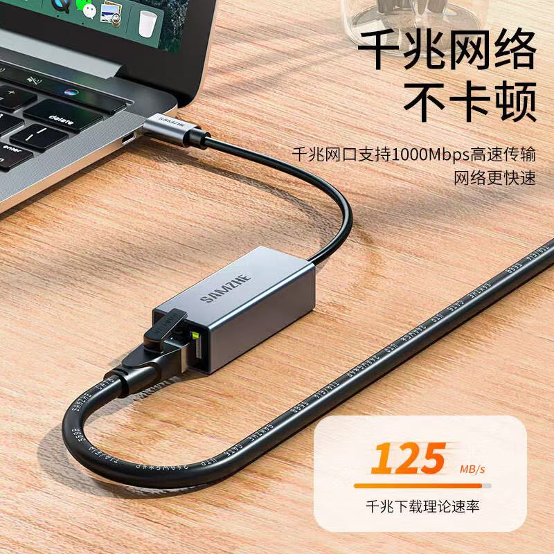山泽Type-c千兆有线网卡转网口RJ45网线接口转换器