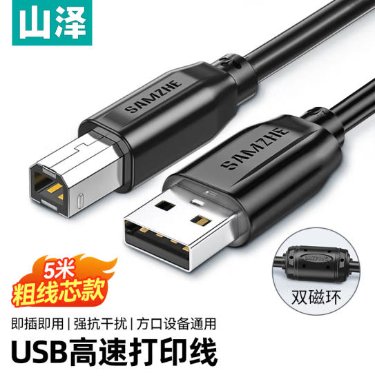 山泽打印机数据连接线5米 usb高速打印线2.0方口